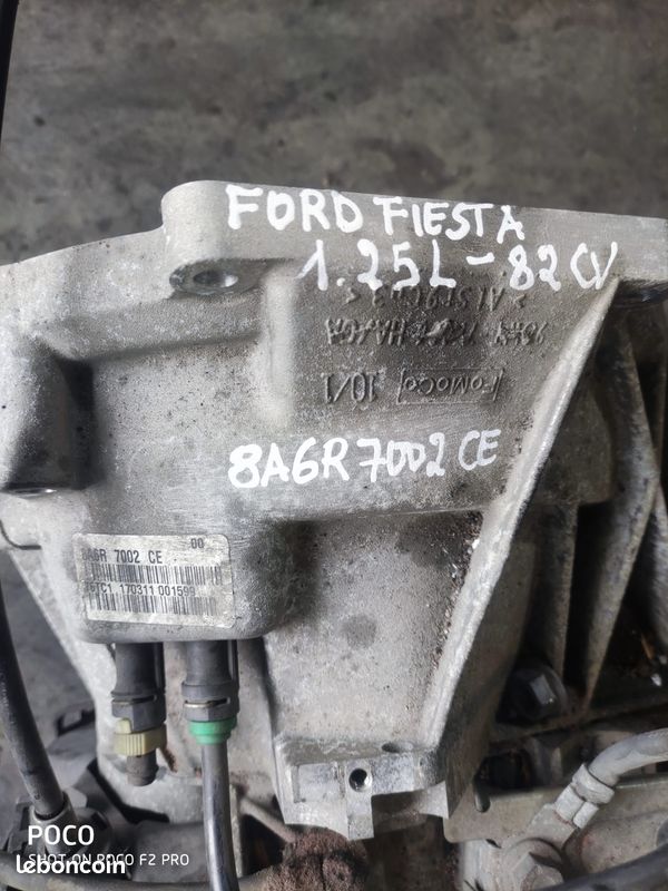 Occazmoteur vous propose une boite vitesse Ford Fiesta 1.25 1,25 16V 82cv 82ch 82 cv 82 ch essence d'occasion et d’origine constructeur en très bon état de fonctionnement, provenant d'un véhicule accidenté, vendu avec une garantie de six mois. Veuillez nous contacter au : 0680648948 Différents moyens de paiement : * Paiement en 3 ou 4 fois avec notre partenaire Oney * Carte bancaire * Virement Référence : 8A6R7002 CE Code moteur : SNJA / SNJB Compatible avec : FORD FIESTA 1242cc essence 80 cv Type SNJA 1.25L DURATEC 16V EFI (60PS) Horaires : de 10h à 18h du lundi au samedi sur Rendez-vous. Adresse : 1 bis rue Gustave Eiffel 91070 Bondoufle.